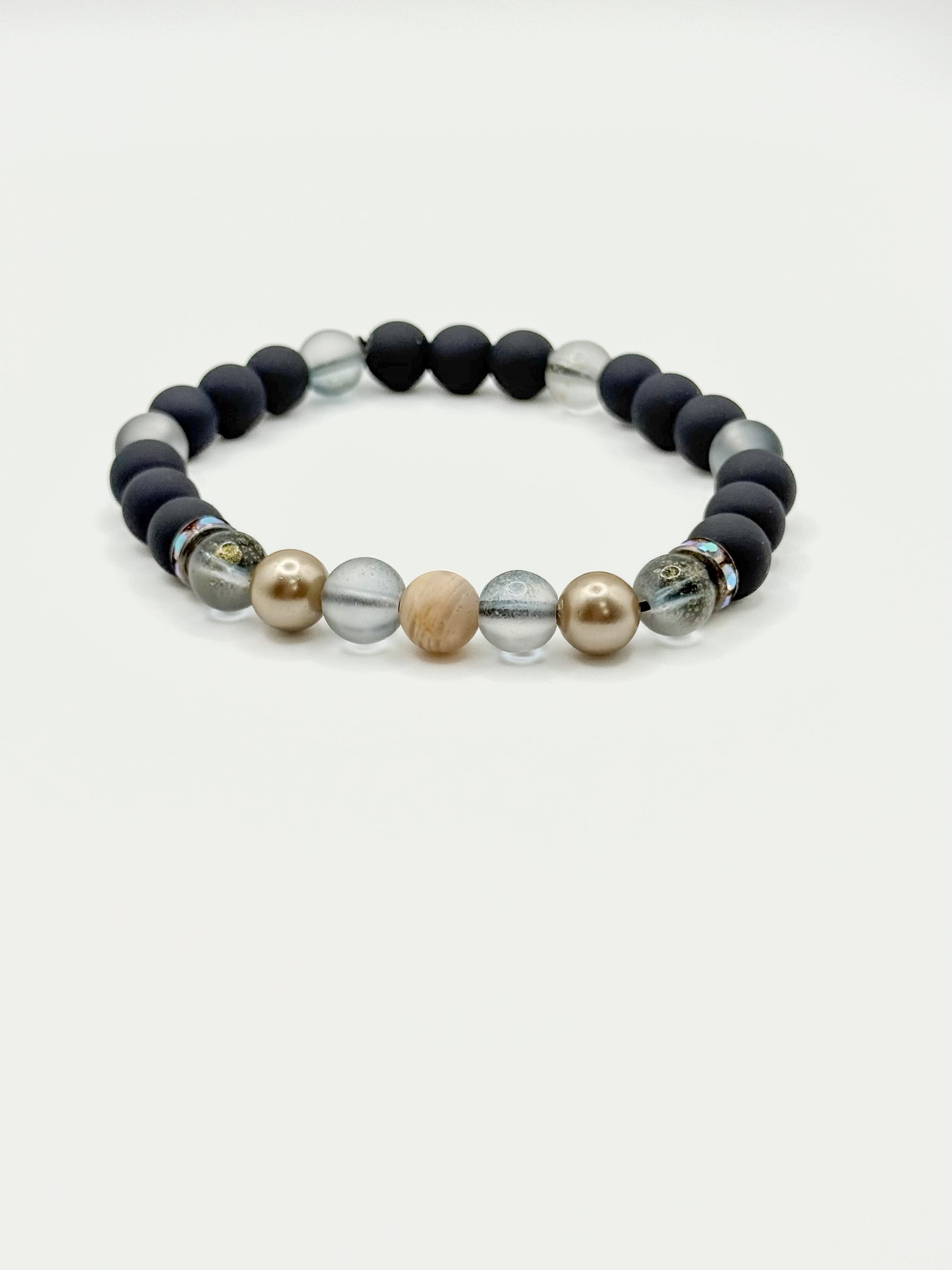 A harmonious blend of Navy Blue Matte Beads, warm Sunstone, coordinating earth-toned rounds, and subtle shimmer accents — Desert Night offers steady grounding and luminous vitality — supporting emotional clarity and empowered presence throughout your day.