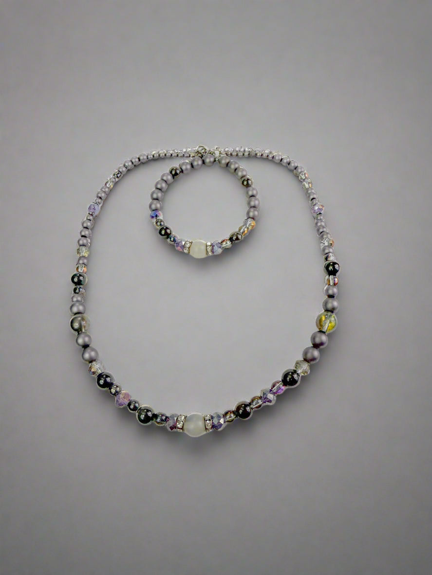 A grounded blend of matte Greys, deep Blacks, and subtle shimmer — featuring Black Jasper and soothing Chalcedony — Slate Edge Set offers emotional resilience and focused clarity — supporting unwavering presence and intentional movement throughout your day.