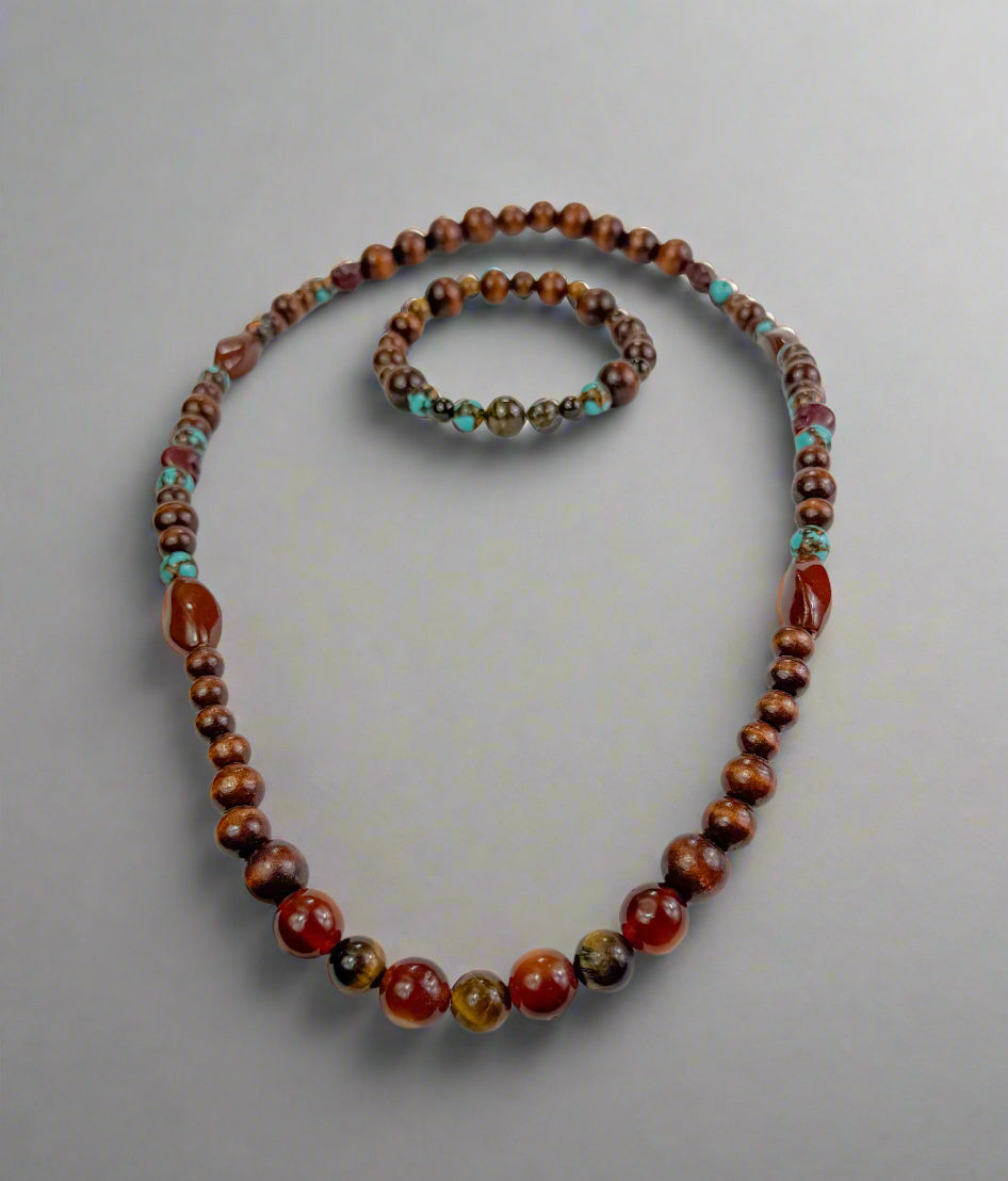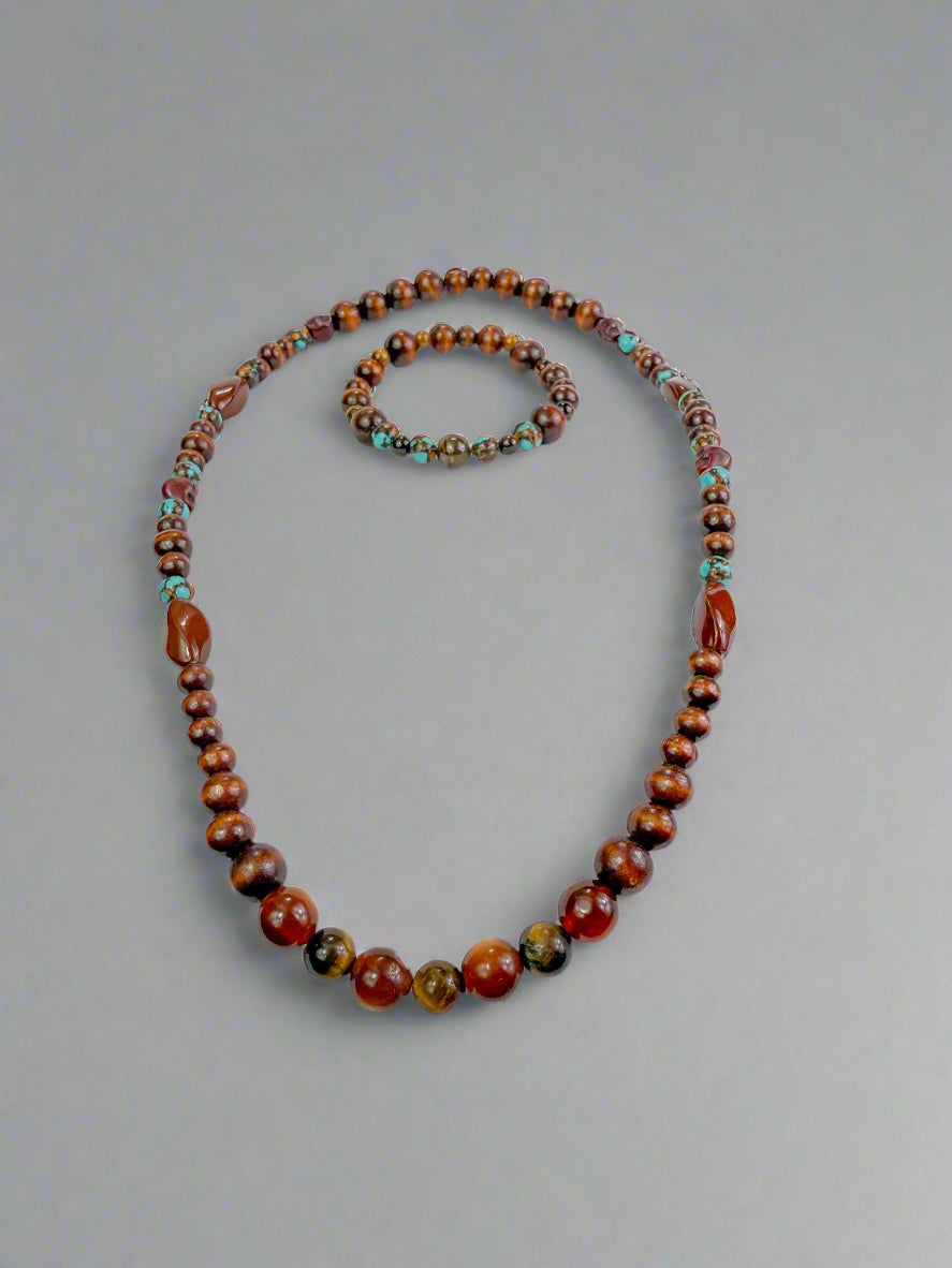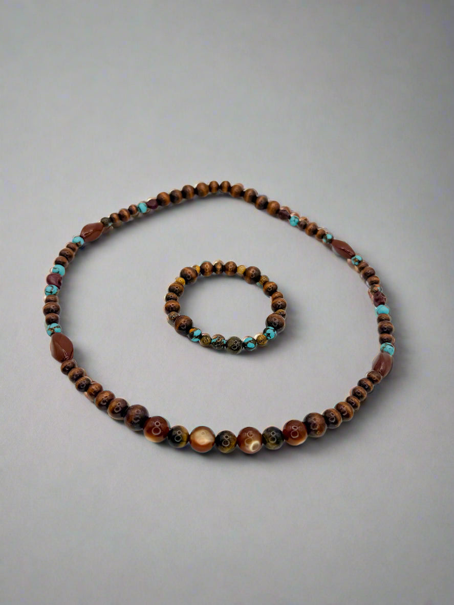 A rooted blend of earthy Tiger Eye, vibrant Turquoise, and grounding earth tones β Grounded Edge Set offers steady strength and empowered clarity β supporting courageous movement and aligned expression throughout your day.
