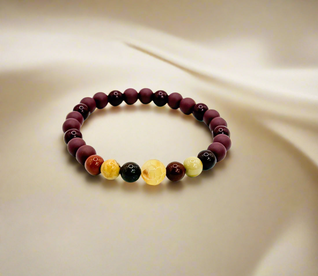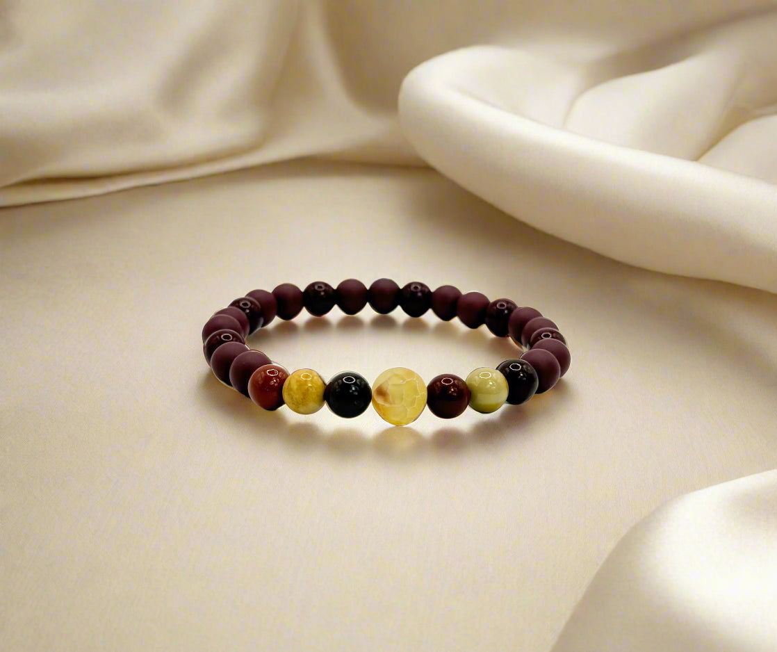 A grounded blend of Mookaite, golden crackled Agate, and matte burgundy beads β Earthline roots you in purpose and resilience. Built for the one who listens inward, walks with legacy, and leads with instinct.